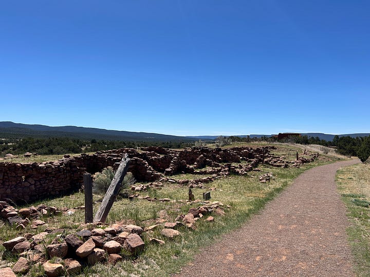 There are a variety of things you can see and do at this park. We chose to do the Ancestral Trail that’s near the visitor center. This is a 1.25 mile loop that takes you to see a variety of ruins, pueblos, kivas, a mission church, and views around the area that are amazing. It’s always so fascinating to see the ruins that have remained for hundreds and hundreds of years!