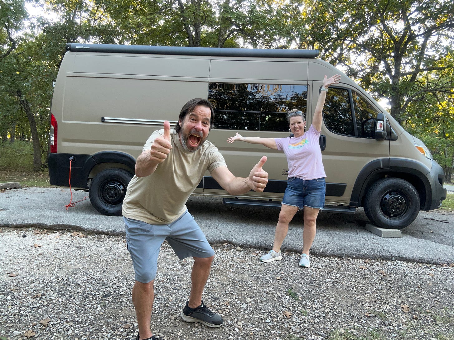 We then headed back to Oklahoma to wait for our van to be delivered, but the first deal fell through, and we had to find another solution. Luckily, we discovered Next Chapter Camper Vans in Tulsa, and we purchased our new home. Woot woot!