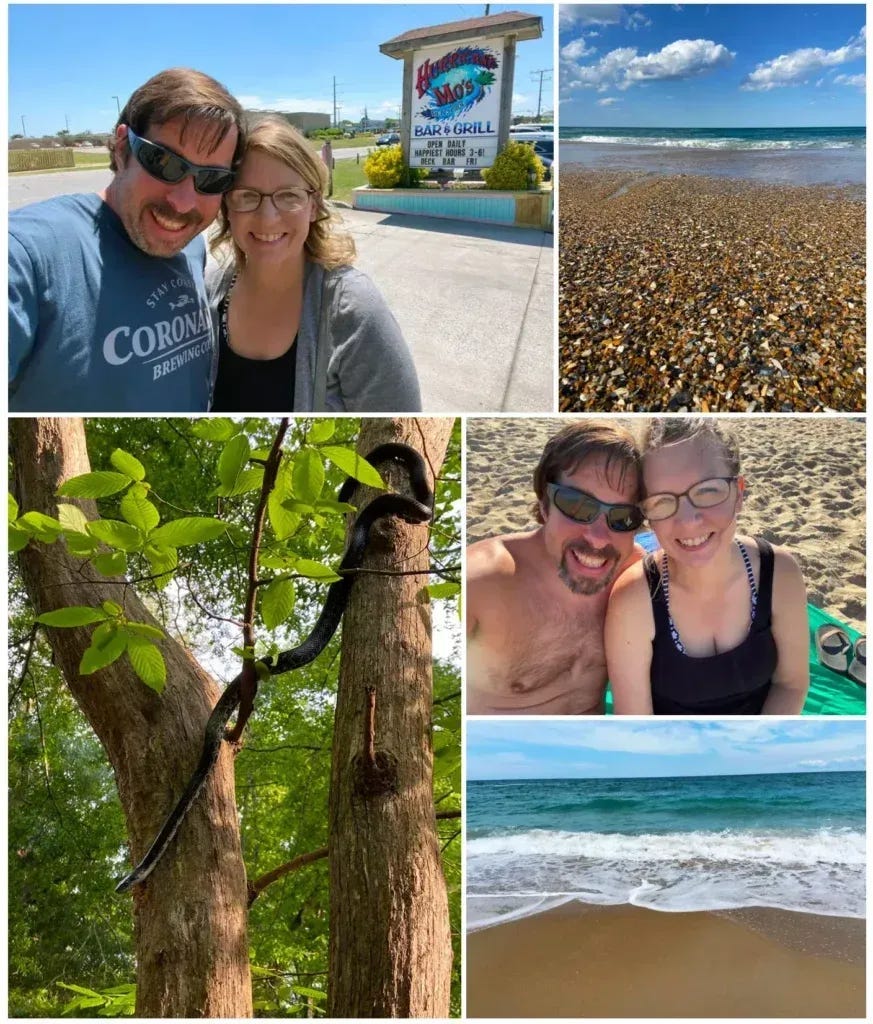 The entire Outer Banks area is magical in so many ways and it has such a great vibe. We loved Hurricane Mo’s Beachside Grill, spending hours walking the beach, visiting the Wright Brothers Memorial, and seeing our awesome friends and their home in Corolla. The drive south down the coast to Bodie Lighthouse and Cape Hatteras Lighthouse was also priceless. Everything was such a wonderful experience.
