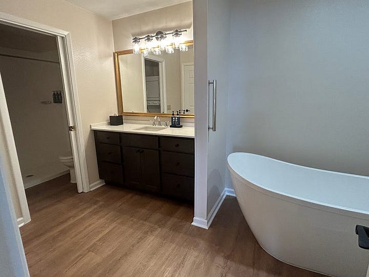 We were in 7511A, and it was so nice! It was very spacious. There was a nice size living room with a huge wall of windows and a door leading out to the balcony, a dining room and full kitchen with everything you need (full stove/oven, dishwasher, full fridge) also with a huge wall of windows, a large bedroom with a door leading out to the balcony, and a very spacious bathroom with a full tub and a separate shower. There were also laundry machines in the bathroom, so we could get all our clothes washed easily—and free!