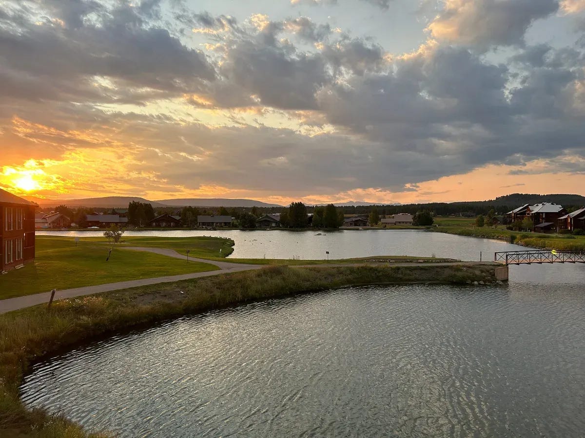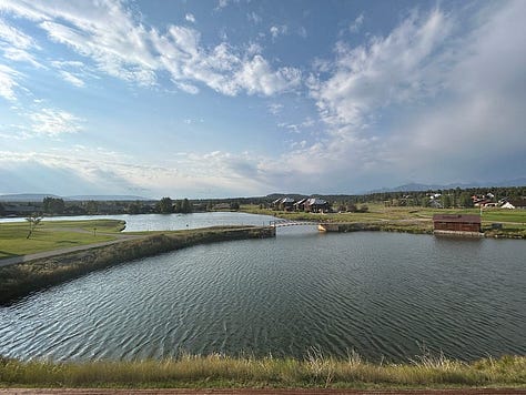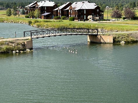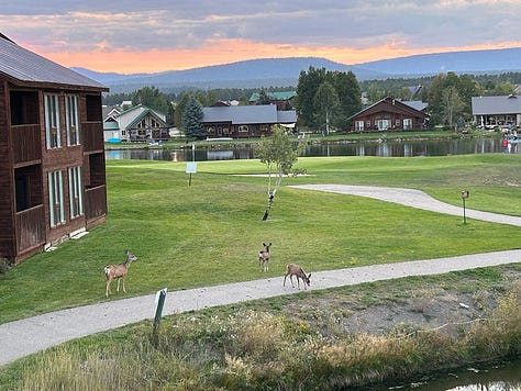 Each evening, the Canadian Geese would fly over to the section to the right of our building, so we could watch them fly in and swim from farther out. We also saw a momma and two baby deer walking around one evening. So cute! But the highlight was the day we got to watch an eagle soar all around us, right in front of us, for a bit. It was so beautiful!