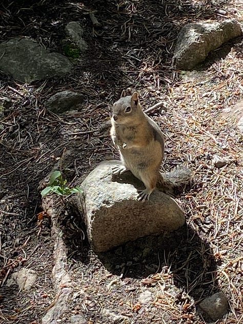 Glacier Creek runs alongside the trail, giving you beautiful views of it—both at ground level and from above as it flows through a canyon. We saw some adorable little chipmunks (which are honestly everywhere in the park), some stunning trees, and even a hint of fall foliage in a few spots.