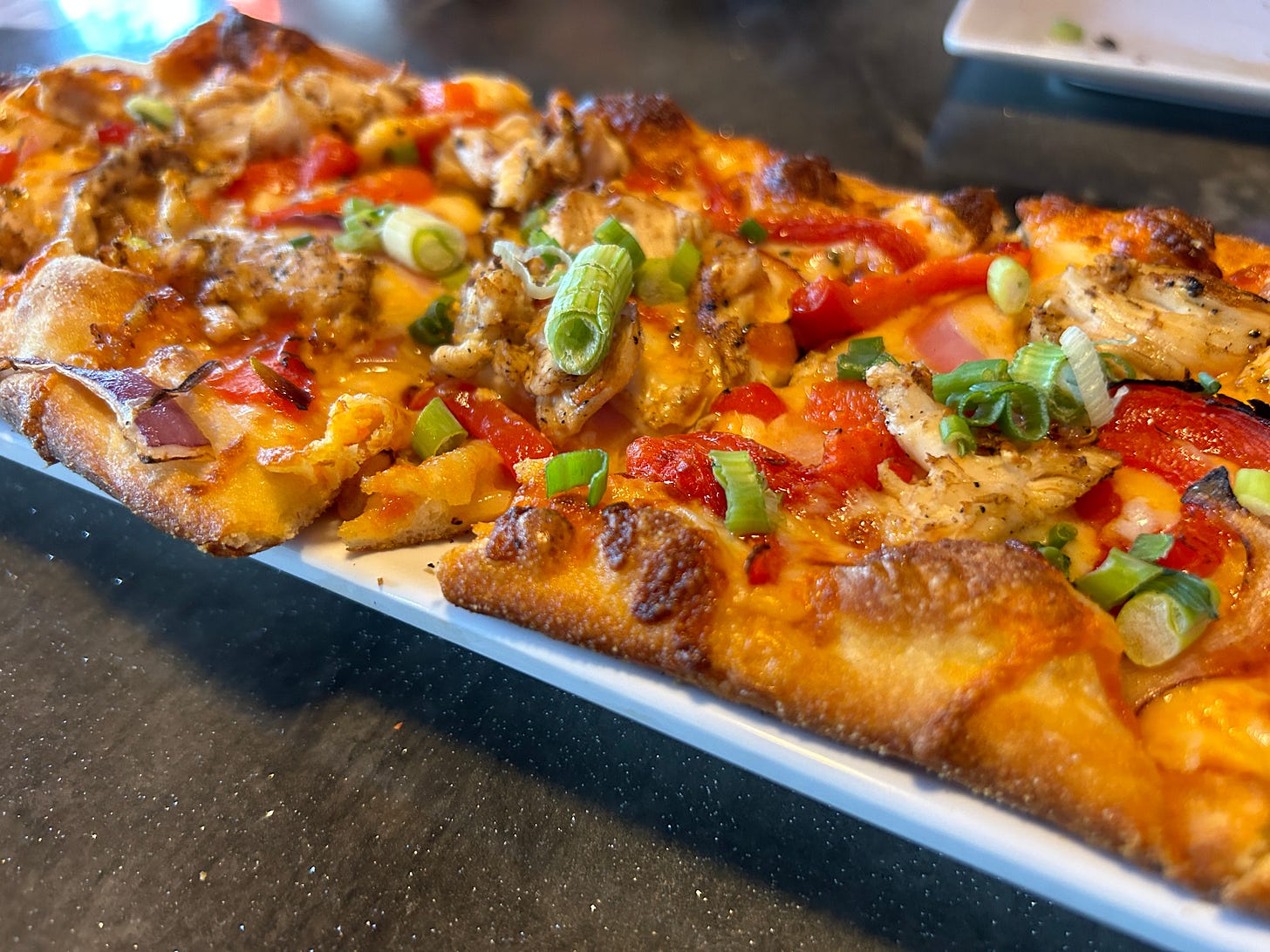 It’s called Brooklyn’s Beer & Burger, and it had a super cool vibe, and the food was delicious! I’m not a beer drinker, but James loves trying good beer, and he very much enjoyed the two he picked. We're usually very healthy eaters, but we decided to splurge and share a couple of naughty items for us —wontons and a buffalo flatbread. They were sure tasty! If only we’d remembered to take a picture of the jalapeño wontons before we almost had them devoured. 😉