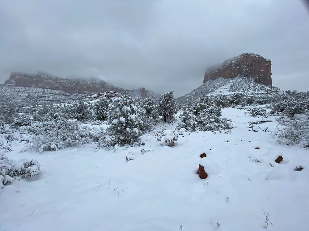 Unfortunately, we haven’t yet had the chance to experience some of the most highly recommended trails. The first week in Sedona, the weather was unseasonably warm for January, and we did our best to make the most of it. The second week was filled with rain, sleet, and snow -- which was incredible in its own way, but it hampered our ability to get outdoors.