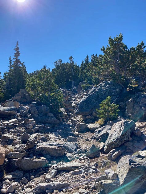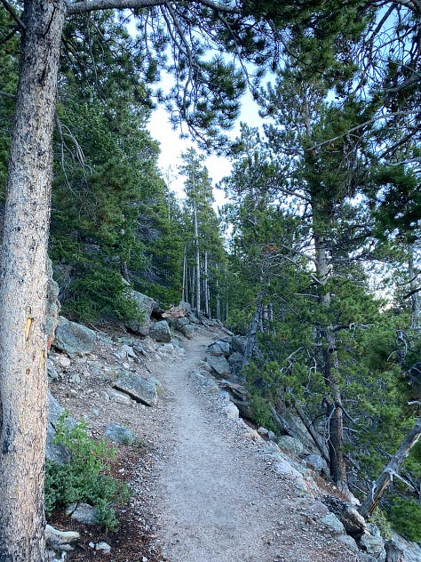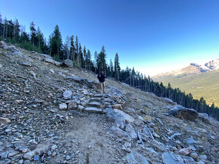 Thank goodness for my hiking poles!! Those help so much. The last couple of miles (or more! haha!) we also had to keep chanting to ourselves that we were going to get BBQ at the end at Smokinā Daveās BBQ ā our favorite restaurant in Estes Park. We had to have something positive to think about to get ourselves down that mountain without keeling over and being stuck there forever. (And by āweā I mostly mean me. lol!)