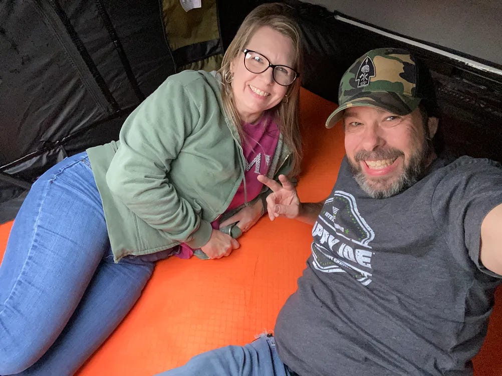 However, I do think we, as slightly broken 50-somethings, provide some real entertainment value to others as we crawl into our RTT for the night. Plus, I’m proud we’ve chosen to take a road less traveled by, being the old people living like the youngsters.