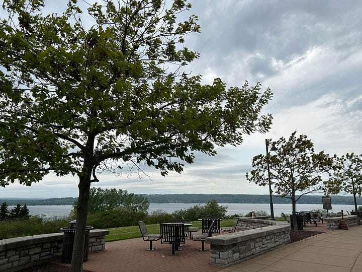 One of the other places we enjoyed was actually just a rest area. We pulled off to take a little break and accidentally discovered a rest area that was just gorgeous, with sweeping views. We were in New York, traveling east along Interstate 86, stopped between Colburns and Belleview, just west of Jamestown, and took in views overlooking Chautauqua Lake. If you’re traveling that stretch of road, it’s definitely a nice place to take a break.