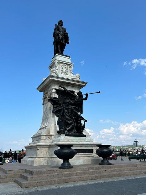 The town itself was very walkable and a great place to explore. There were tons of little shops, lots of restaurants and bars, and plenty of historical things and beautiful architecture to see. I loved seeing the beautiful streets, the war memorial statue, the fountains in front of Hôtel de Ville, the statue of Samuel de Champlain, the St. Lawrence River, and the Fontaine de Tourney - all shown below.