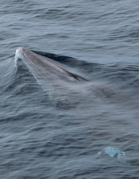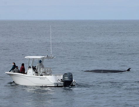 Once we were out in the open ocean, there were times when we would sit in place and wait and watch, and whales would come up and swim around our boat.