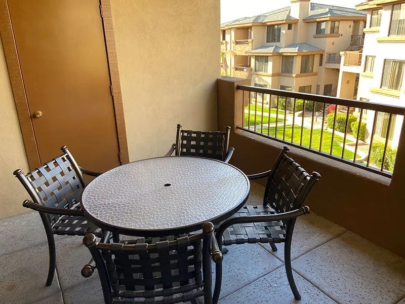 Right now (June 2021), the price on their website for a one-bedroom is $106.30 per night or $95.67 per night with a military discount. Seeing that we’ve hotel crashed in some shitty places like Extended Stay or select Comfort Inns for the same price or more, the Scottsdale Links Resort rates are fantastic.