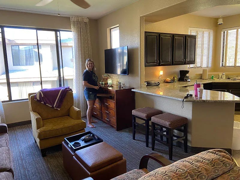 Our one bedroom suite at the Scottsdale Links Resort was perfect. Not only was it clean, but there was also plenty of lighting and space for our truckload of buckets.