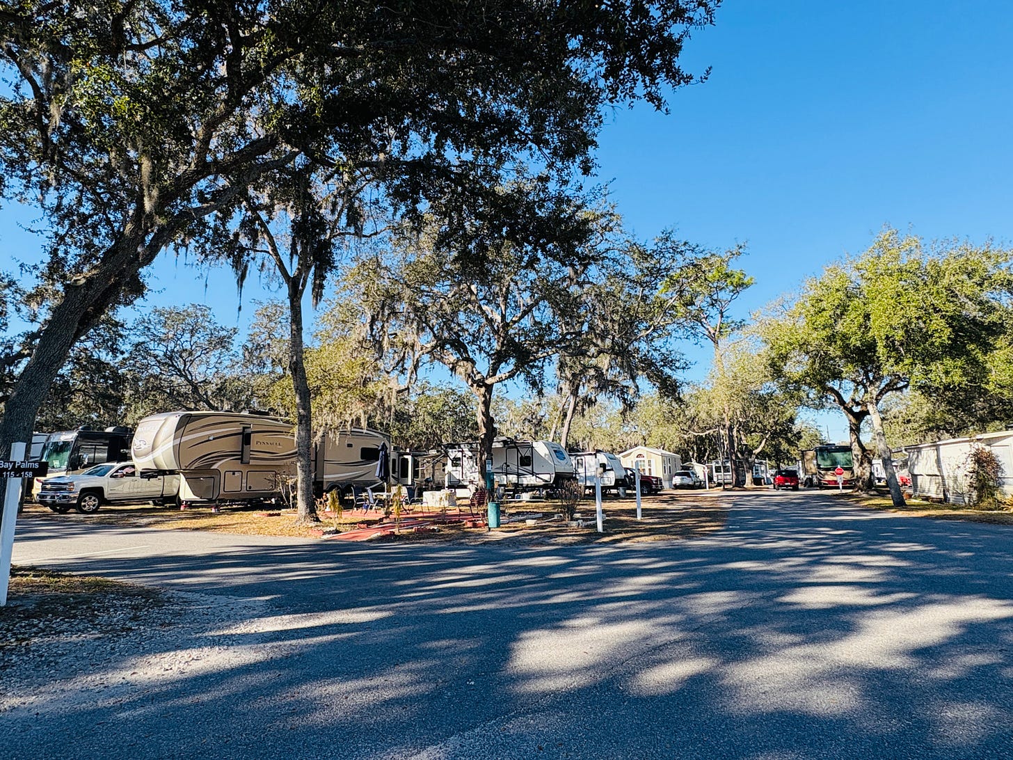 After we made our way to the Keys and back up towards Tampa, we were tired of driving and needed a couple of days to sit and relax. So we found the Southern Aire RV Resort in the Passport America app and decided to book it.