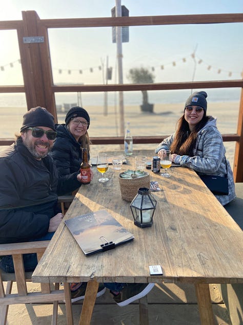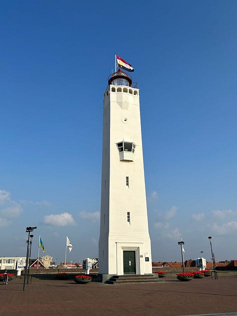 We stayed in Noordwijk and enjoyed walking around, climbing up to the beach, checking out the lighthouse, and looking for a few shells. We dined at Strandclub Witsand and enjoyed delicious food and drinks! It seemed pretty nice outside, so we opted to sit in their outdoor area to enjoy the ocean view and hear the waves roll in. It turned out okay, but we were pretty dang cold sitting out there! Still, it was a fantastic view and a fun experience.