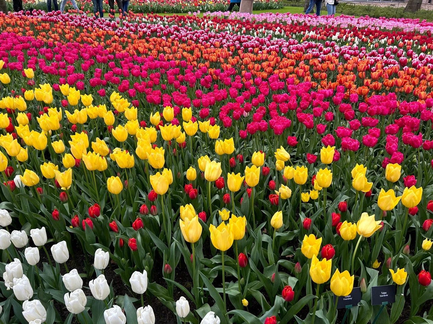 The main event for the trip was Keukenhof Gardens and it did not disappoint. I could spend hours walking around this beautiful garden and still never see all its beauty. They have so many different varieties of flowers - not all tulips but all kinds - and they’re just stunning. They do a fantastic job of creating beautiful patterns with the flower gardens that really draw your eye.