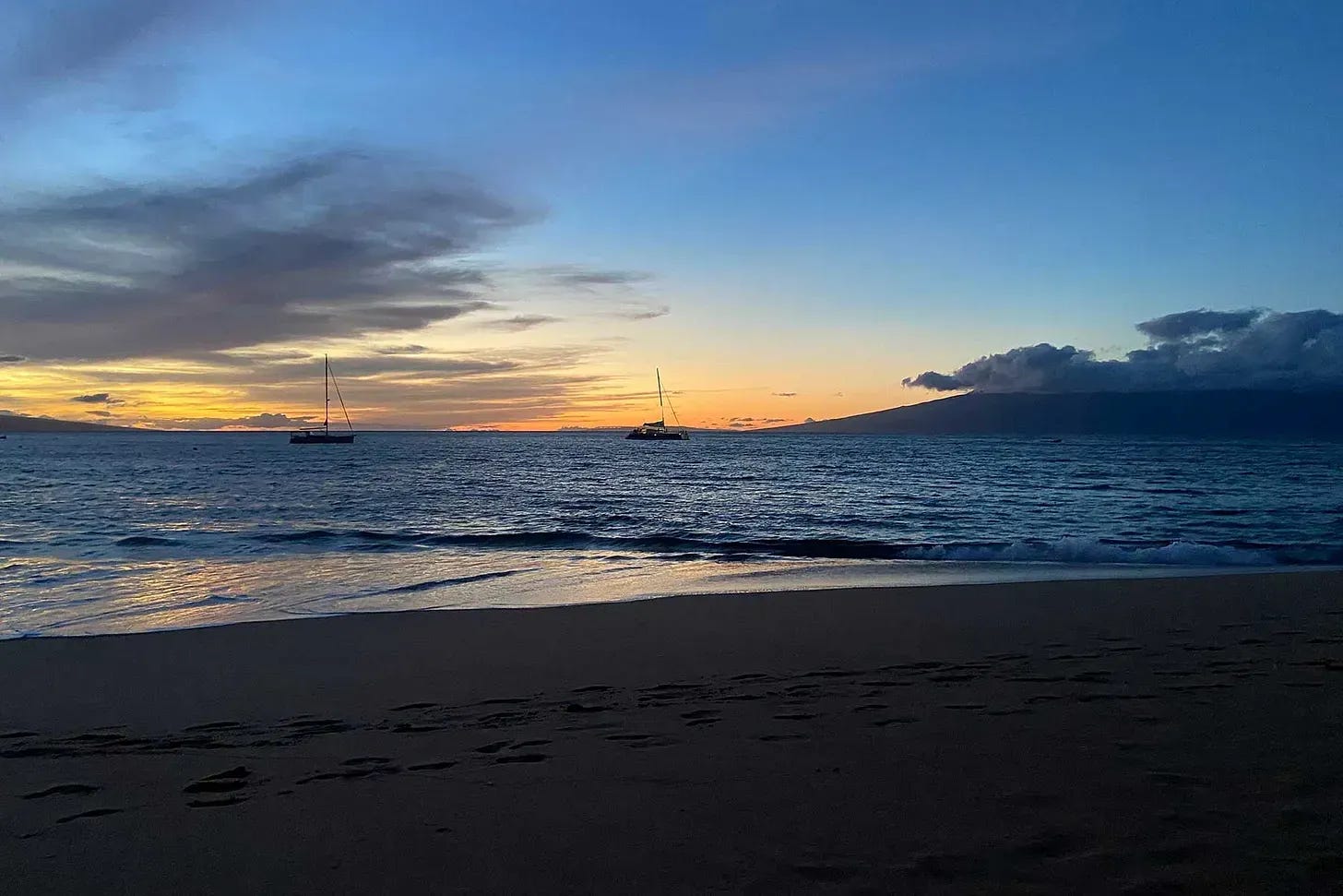 Imagine walking into a 1,952-square-foot place and immediately seeing full-width views of the Pacific Ocean and the islands of Lanai, Molokai, and Oahu from your back door. With the pristine sandy beaches below and the Black Rock cliff to our right, we could feel the cool breeze coming from the mountains. The painted evening sky, in incredible colors as the sun melted into the ocean, was breathtaking.