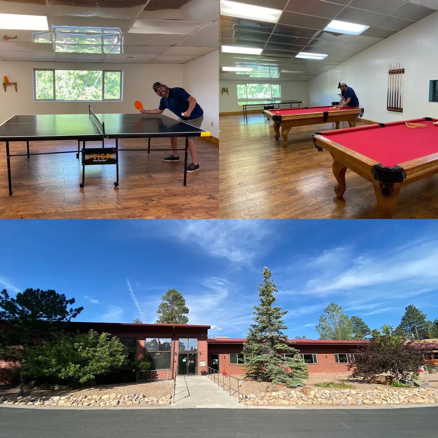 They also have a large recreational building with an indoor pool and a hot tub (which we didn’t use) and a nice game room. We enjoyed the game room, playing pool and ping-pong several times. We got a lot of laughs out of that, considering how bad we are at both sometimes. 😂