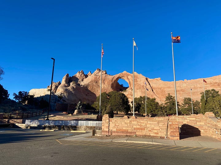 Since we hate driving the interstates, we did a quick internet search for backroads and discovered a place called Window Rock (Tségháhoodzání), located along Highway 246 in Arizona. It is the largest Diné reservation1 in the United States and serves as the capital for the Navajo Nation.