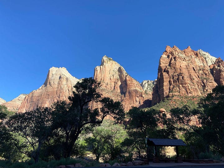 We returned to our truck via the shuttle, but the adventure was not over. Since we were heading to Bryce Canyon the following day, we saw things anew as we drove north on Highway 9 through the park on our way out. If you thought being in the park was the only reward, you’d be wrong!